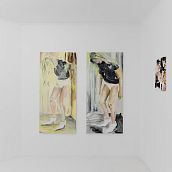 Новые работы Австрейх написаны в палитре от ярких оттенков желтого и розового до глубокого черного, сосредоточены на человеческой фигуре, построенной из слоев вибрирующей краски. Ее свободные жесты затушевывают однозначное прочтение, поскольку тела рассыпаются на беспокойную и местами неуловимую активность. Разрозненные по воле художницы фрагменты предлагают нелинейную форму повествования внутри проекта, тщательно сконструированную, но остающуюся личной, как будто вы хаотично пролистываете заметки или дневник.