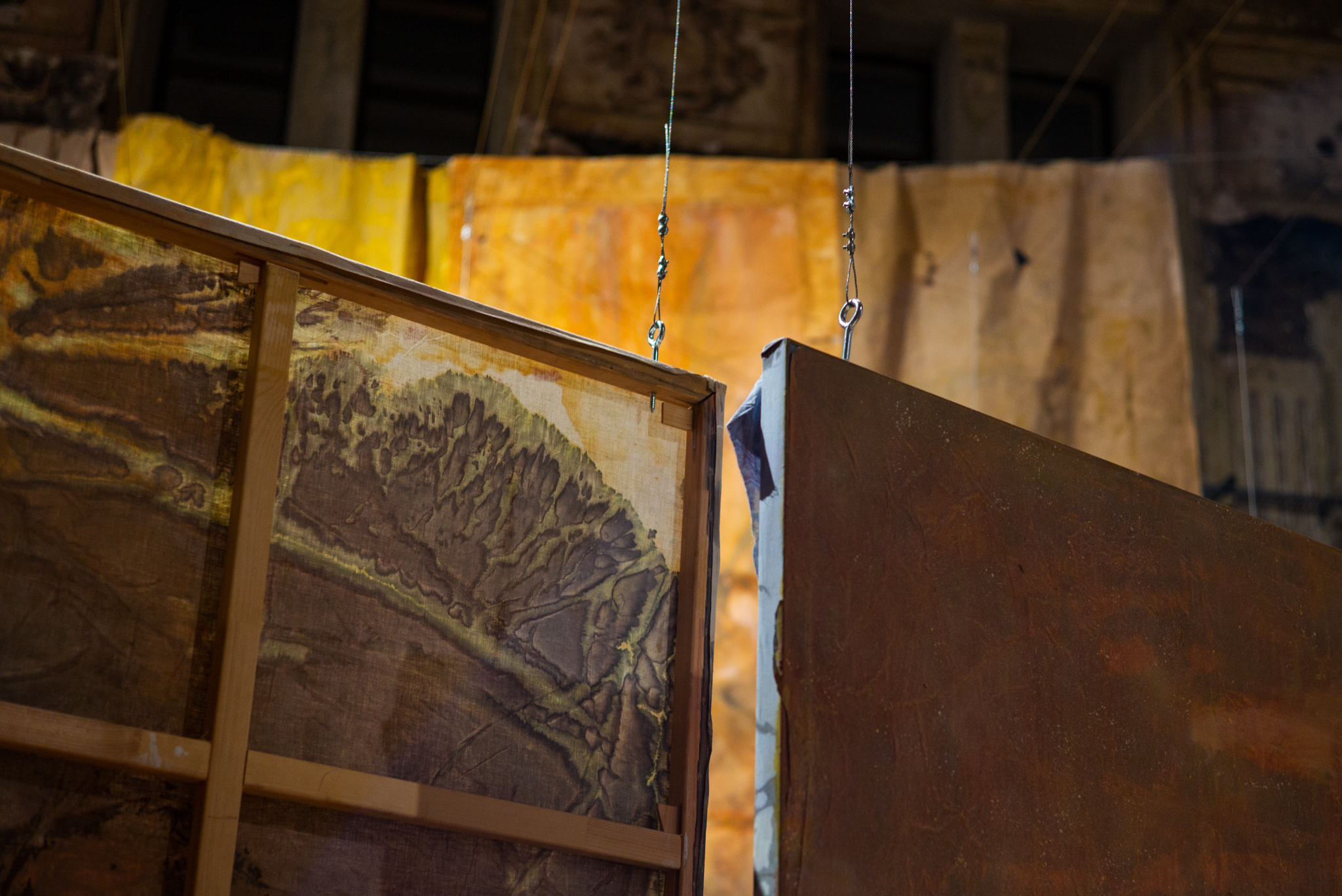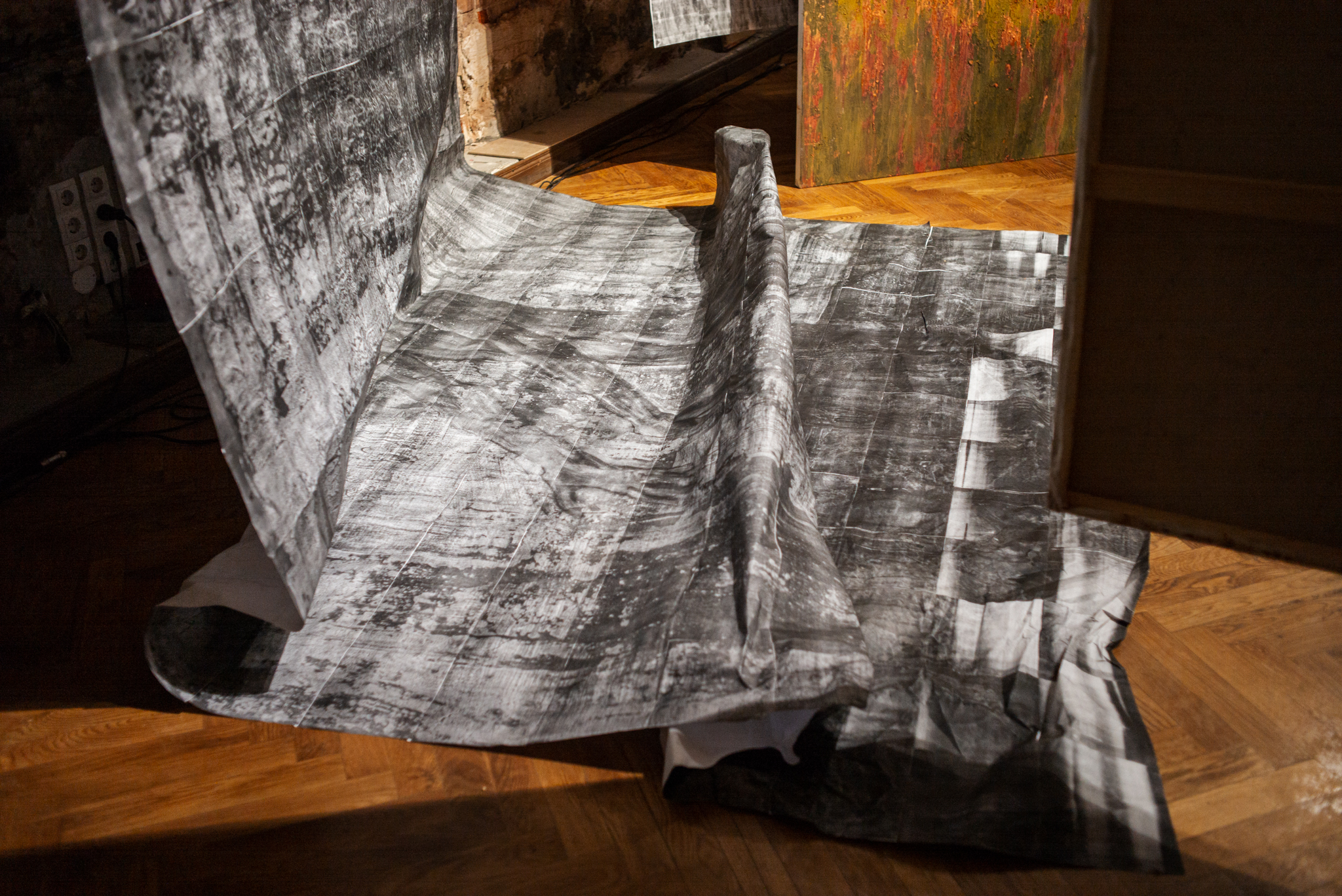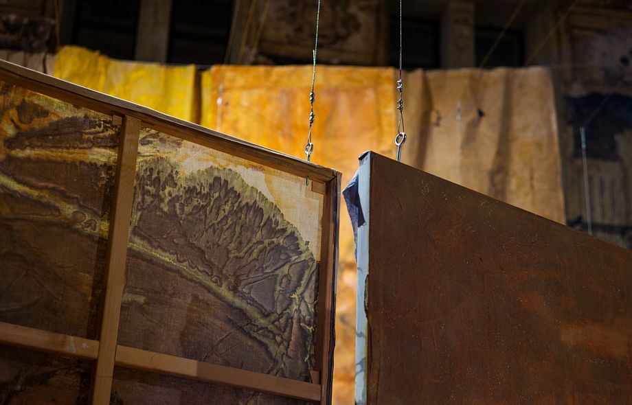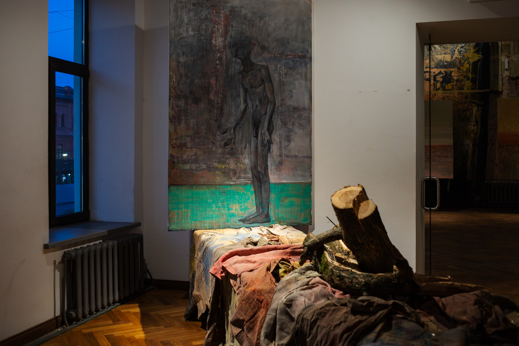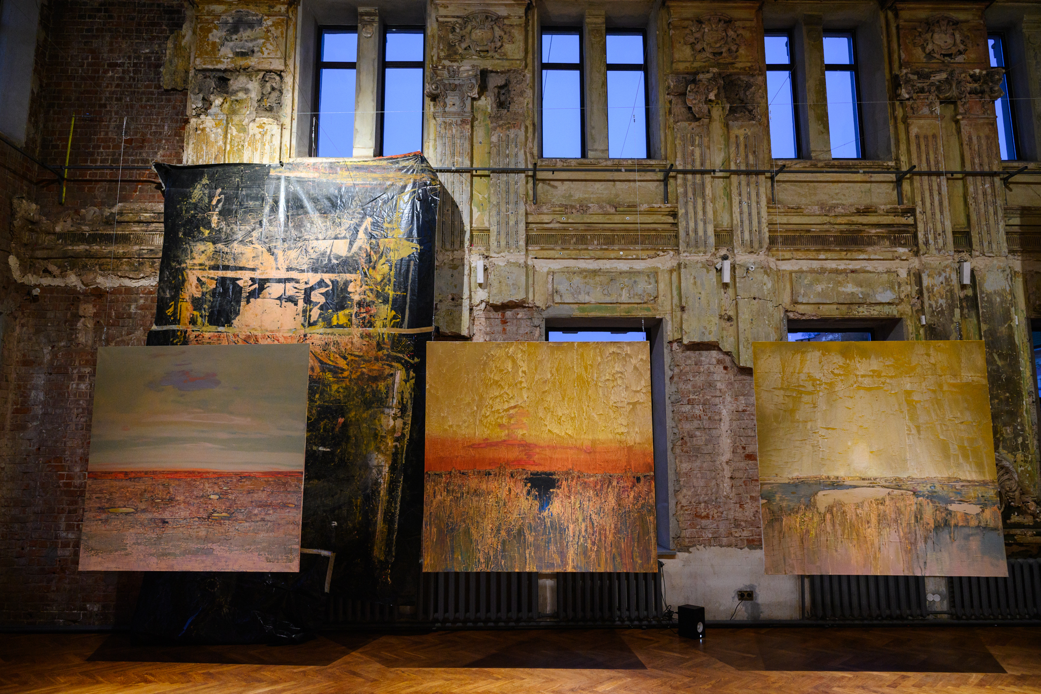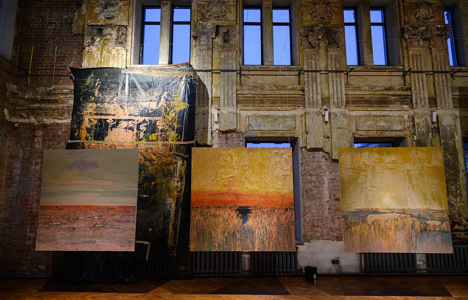 Эти колебания между доступным и недостижимым, реальным и вымышленным, материальным и абстрактным рождают предчувствие чего-то ускользающего. Может быть, смысла, который зритель все же пробует обнаружить на условной линии горизонта, растекающейся подобно горизонту русского поля. В стремлении к нему зритель получает возможность переопределить свой опыт, оказываясь не вне картины, но внутри нее, внутри трансового эмоционально-чувственного состояния.