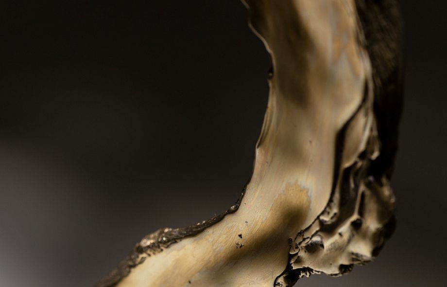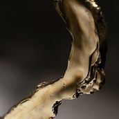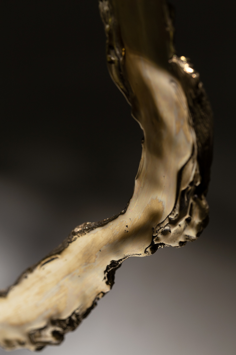 Скульптуры Дениса Патракеева невесомы — они не изображают предмет, но скорее обозначают его незримый след. В легкой литой форме есть нечто от пойманных в объектив движений водных струй и капель в состоянии полета. Работая на точных и тонких минималистических формулировках форм, художник предельно внимателен к каждому жесту. При том, что саму природу его пластики нельзя понять как статичную — это живой характер текучих форм, находящихся в процессе метаморфоз, но лишенный драматизма и борьбы.