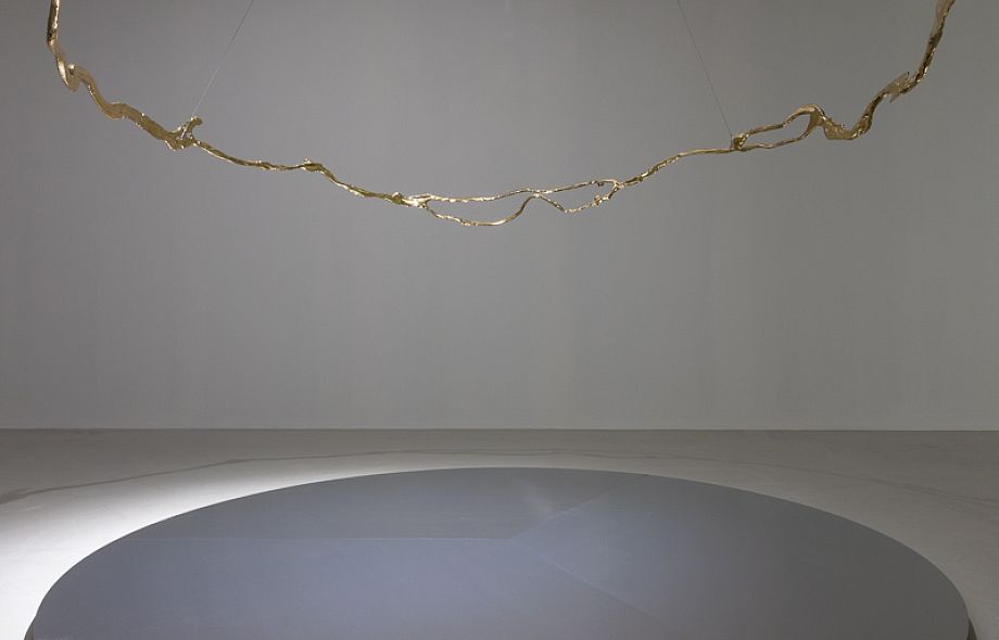 Работа «Круг воды» парит, отражаясь в окоеме водной глади, венчая ее своим сиянием. Отсутствие гравитации привносит в восприятие скульптуры ощущение чуда, когда удается поймать неуловимую изменчивость живой формы. По сути перед нами запечатленный след колебательного движения не самой воды, но пространства, созданного путем вычитания этой формой.