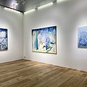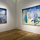 Композиции Дзохоэ - интерьеры, напоминающие детские комнаты. Часто в центре их кроватка или манеж, разросшийся до размеров ложа, чтобы укрыть уже взрослого, но всё ещё уязвимого героя. Синий тон картин, как воздушная перспектива, возведённая в степень, ведь образы от нас отделяют не километры, а годы и эпохи. Современная живопись, больше не обязанная отражать реальность, находит себя в новой, особенной роли. Её стихия - грань между - сном и явью, знакомым и неизвестным, реальным и невозможным. Ностальгией и навязчивой идеей. Мы, зрители, свободны выбирать оттенки восприятия. Нырять с головой или наблюдать с берега."